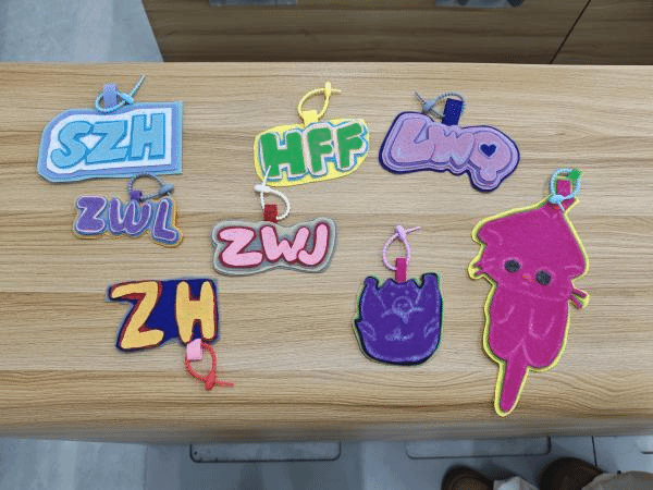 工作人员播放不织布手工制作视频并分发不织布、剪刀、彩笔等材料。面对各色不织布与创作工具,大家热情高涨却又有些不知所措,有人对姓名牌造型设计犹豫不定,有人在色彩搭配上举棋不定。很快,现场便涌现出互助友爱的热闹场景:手工创作熟练的同学主动分享裁剪、拼接技巧;擅长创意设计的同学则帮忙出主意、挑选布料。待姓名牌作品完成,同学们迫不及待地展示成果,把创意满满的作品摆放在展示区,拉着新认识的伙伴从不同角度欣赏。每一块姓名牌都凝聚着新生们的巧思与心意,尽显手工创作的趣味与初入校园的真挚情谊。