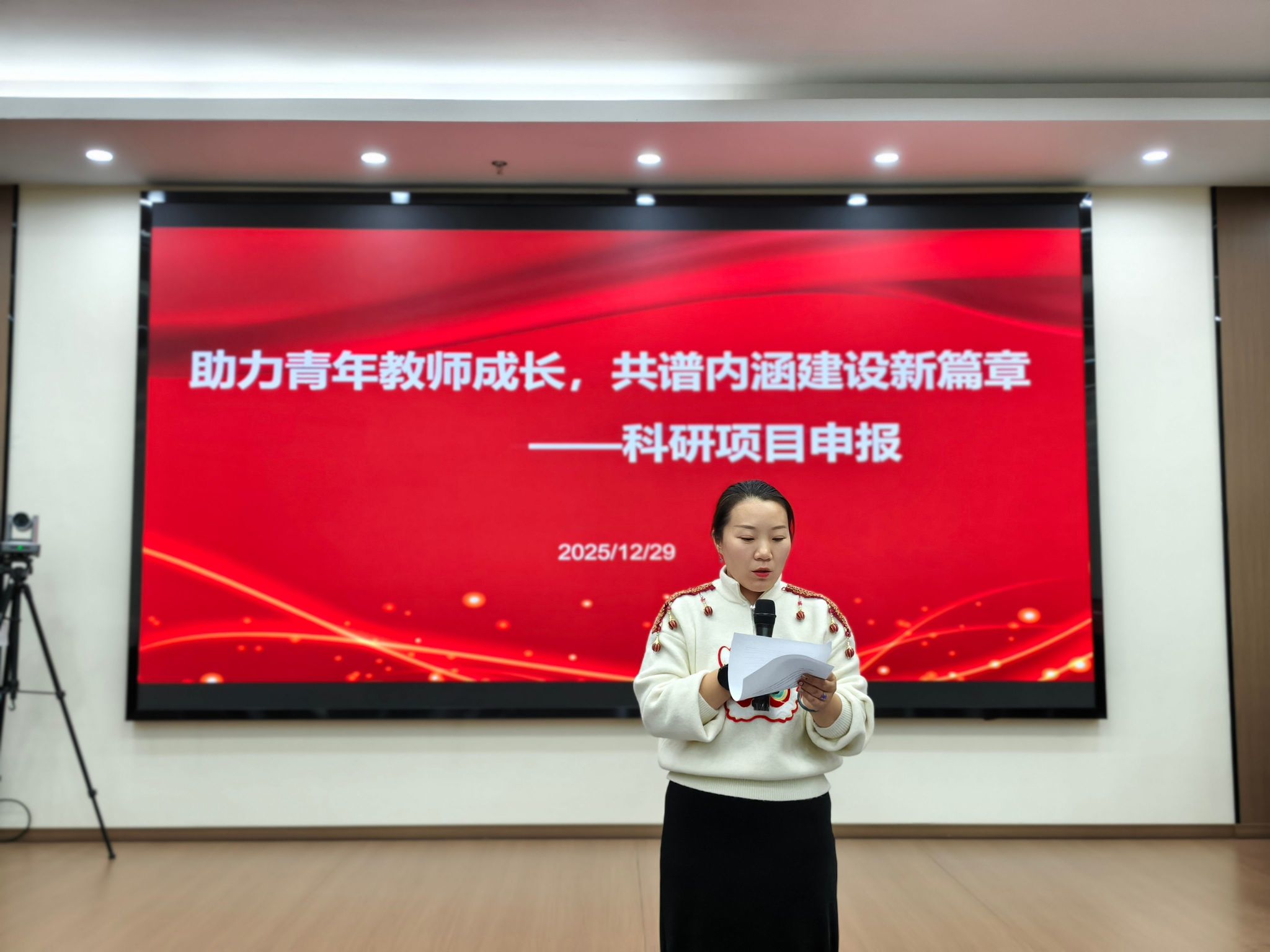 为切实助力青年教师提升科研项目申报能力,夯实学校内涵建设根基,推动高水平应用型大学建设迈向新台阶,12 月 29 日下午 14:30,网络空间安全学院在图书馆第一会议室成功举办 “助力青年教师成长,共谱内涵建设新篇章 —— 科研项目申报” 专题讲座。本次讲座由教学副院长张波主持,学院教授、控制理论与控制工程学科博士张冬雯主讲,全校青年教师及科研骨干积极参与。