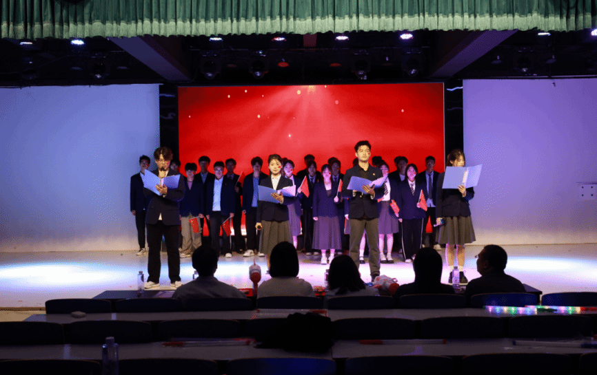 歌舞类节目以蓬勃朝气点燃现场:2024级软件工程1班团支部用情景剧致敬五四,用诗朗诵传承先辈之志,用歌曲《有我》致敬中国共产主义青年团,展现当代青年的蓬勃力量;2024级网络空间安全6班团支部《我和我的祖国》合唱堪称视觉盛宴—背景大屏的蓝天白云下,五星红旗挥舞飘扬,同学们手中星星灯随旋律汇成“星河”,前排手语表演者以指尖“书写”对祖国的深情,庄严与温暖在舞台上层层晕染;2024级软件工程3班全体学生共同出演,以班级生活写照与荣誉获得为背景,搭配《像你这样的朋友》音乐,博采众长,真切的让大家感受到这是一个朝气蓬勃,团结一致的集体!