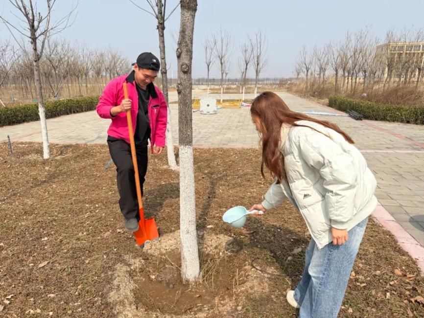 2026年3月12日,河北工程技术学院灵寿校区校园绿植区域一片热闹景象,网络空间安全学院学生会活动组织部主办的 “绿意萌芽·水润新生” 植树节浇水活动如期开展,来自学院25级的 50 名学生志愿者参与其中,活动历时约一个半小时。